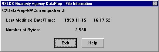 If the rate of domain-level errors in your Database Extract file exceeds the threshold levels established by ED, DataPrep will not create a Submittal file. However, it will create an Extract Error file that you can use to create Extract Error reports and correct your database before creating a new Database Extract file and rerunning Extract Validation. Even if your domain error rates are below the thresholds, you can still create Extract Error reports and get a head start on correcting any domain-level errors Extract Validation does identify in your Submittal file.