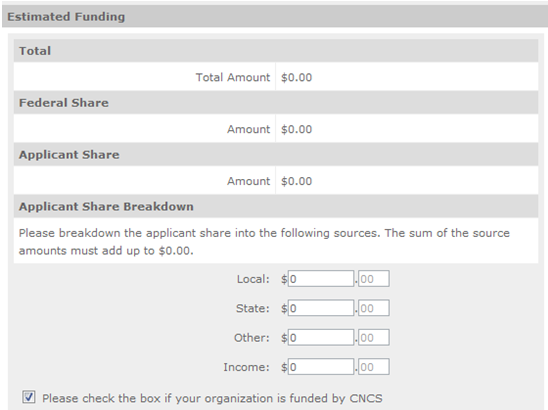 In this section, you will enter in the respective stipends for both Corporation and Non-Corporation funded volunteer service years, as appropriate.