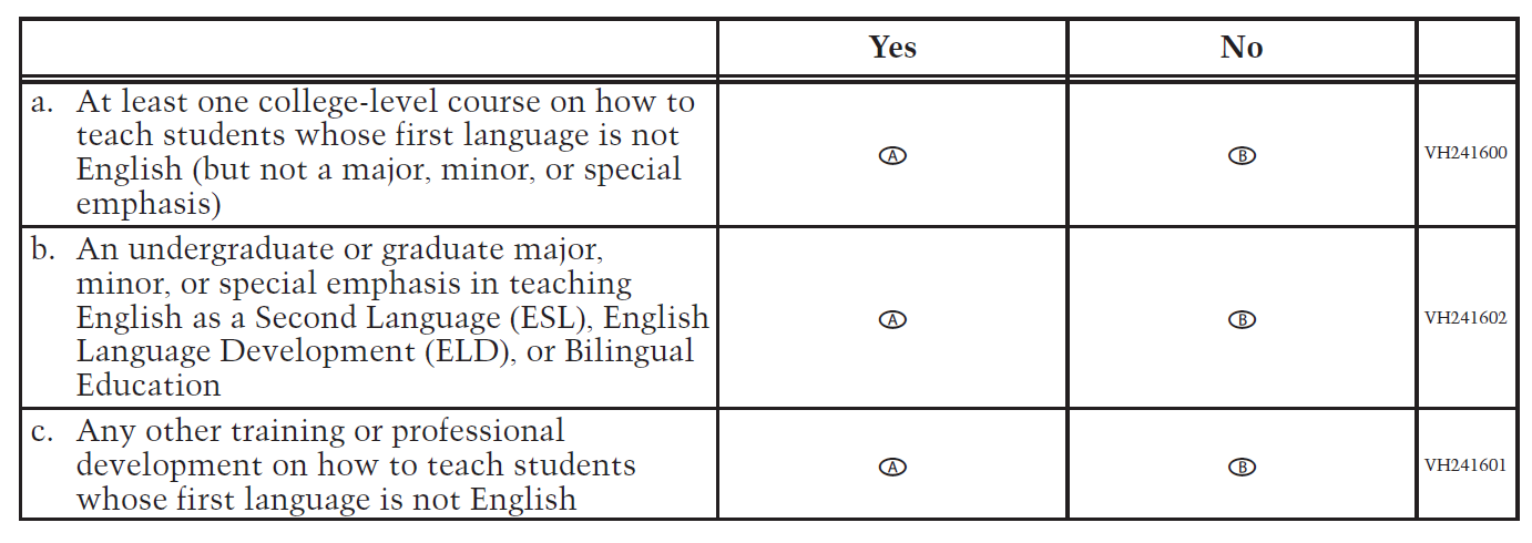 reading/language arts curriculum? Select one circle in each row.