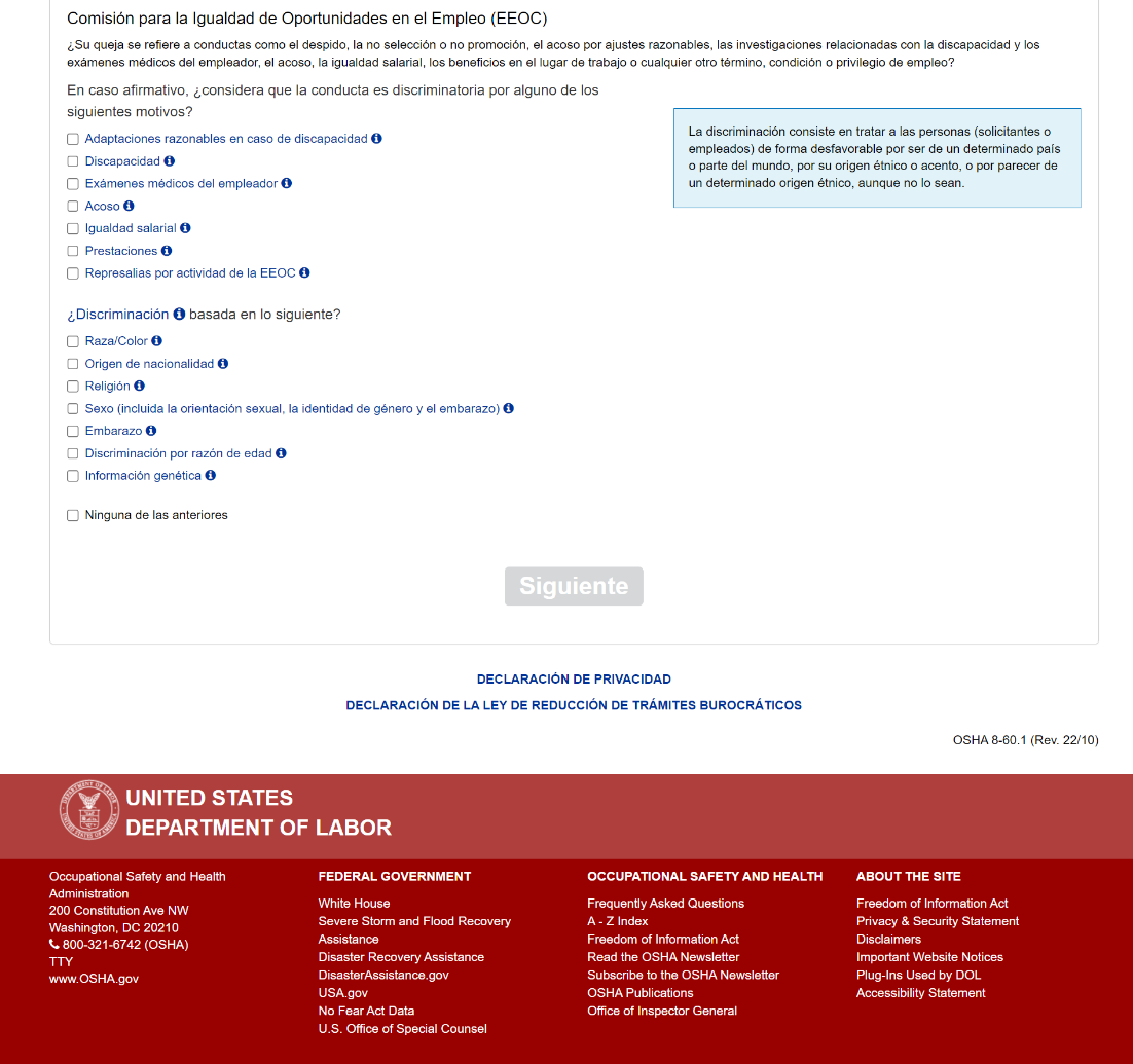 OSHA 8-60.1 Formulario Electronico de la OSHA para Presentar Queja C