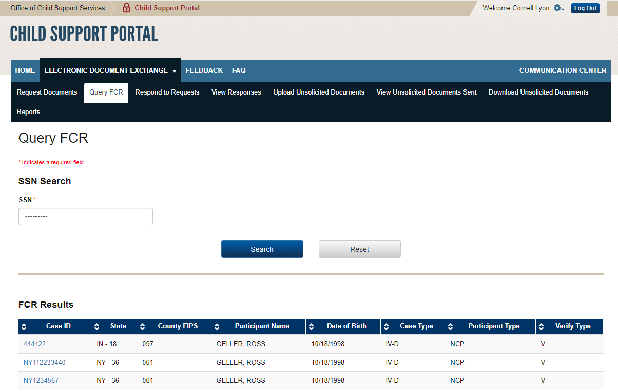PAPERWORK REDUCTION ACT OF 1995 (Pub. L. 104-13) STATEMENT OF PUBLIC BURDEN: The purpose of this voluntary information collection is for authorized users in state child support agencies to exchange case documents electronically with other state child support agencies. Public reporting estimated burden for this collection of information is 0.17 hours per respondent, including the time for reviewing instructions, gathering and maintaining the data needed, and reviewing the collection of information. As provided by 42 U.S.C 653(m)(2), any confidential information collected for this program is secured and accessed only by authorized users. A federal agency may not conduct or sponsor an information collection without a valid OMB Control Number. No individual or entity is required to respond to, nor shall an individual or entity be subject to a penalty for failure to comply with a collection of information subject to the requirements of the Paperwork Reduction Act of 1995, without a current valid OMB Control Number. If you have any comments on this collection of information, please contact OCSSFedSystems@acf.hhs.gov
