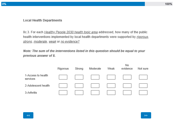 Screen 50: Note: the numerical of value of ‘8,’ shown below, is a piped-text entry based on the value input into Q8e.1. The rows displayed are equal to the items selected in 8e.2