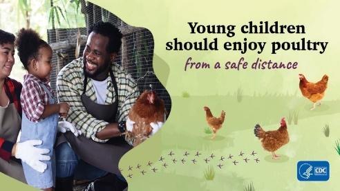 Chickens, ducks, chicks and ducklings can carry harmful germs like Salmonella. Do not let children younger than 5 years touch any poultry. Always supervise young children to enjoy poultry from a safe distance. Learn more at: https://www.cdc.gov/healthypets/pets/farm-animals/backyard-poultry.html |