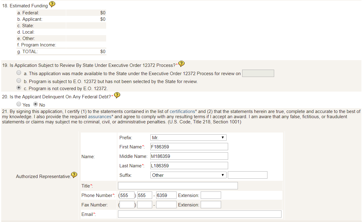 Signed AssurancesAfter submitting the grant application, HSES automatically generates the following electronically signed assurances for download in the SF-424 tab