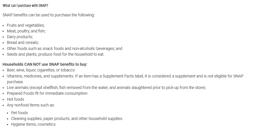 [POINT TO “SNAP IS FOR FOOD” SECTION]