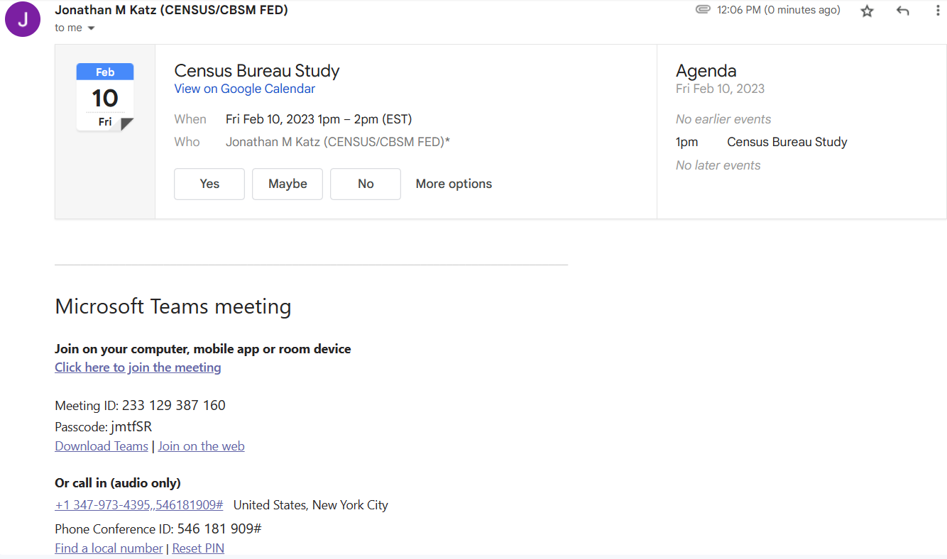 Internal Census Bureau Email Announcement