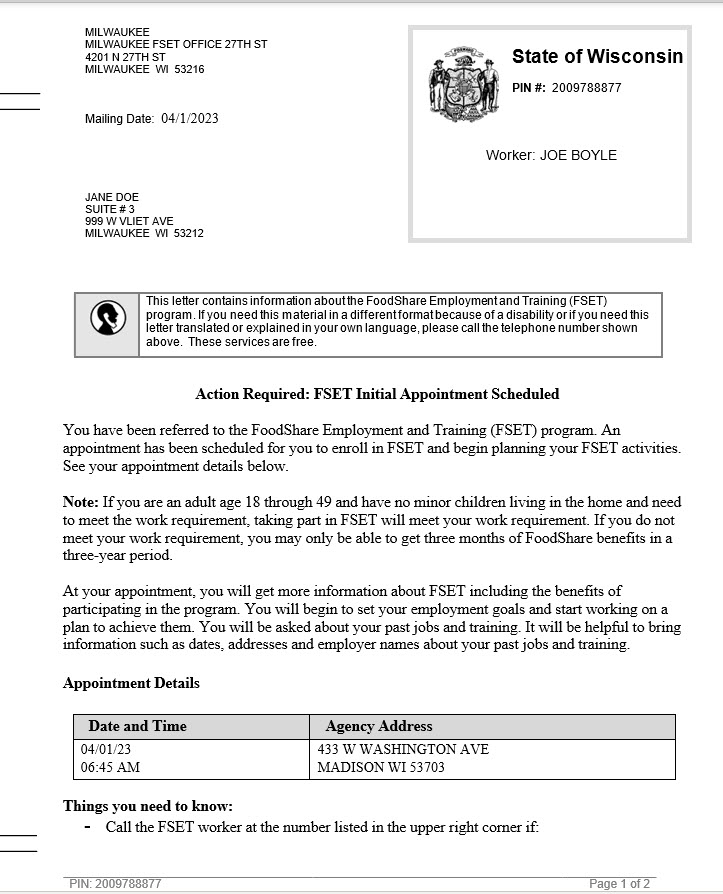 Letter 4 – FSET Initial Appointment
