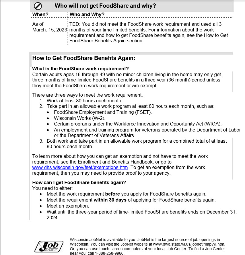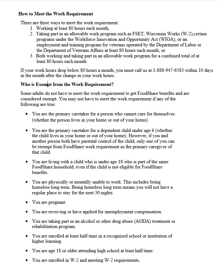[POINT TO OR HIGHLIGHT FIRST PARAGRAPH UNDER “What is the FoodShare work requirement?” What does this first paragraph mean to you?