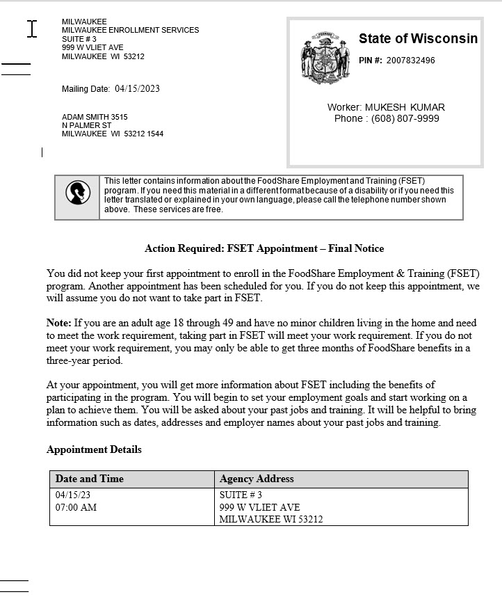 5 – FSET Appointment Final Notice