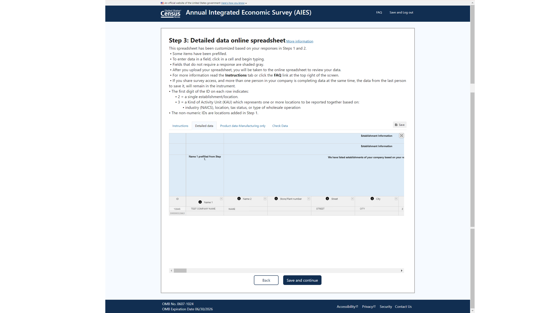 Annual Integrated Economic Survey Production Screenshots
