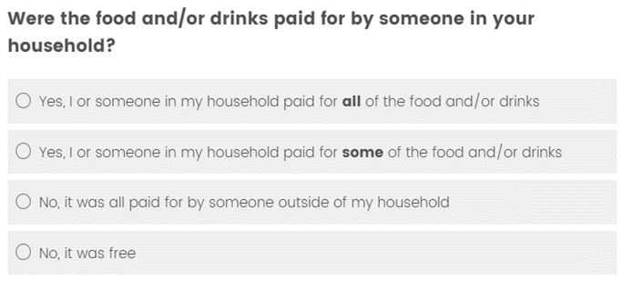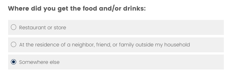 Imagine that you received food from the someone who doesn't live in your household, What response option would you select in the following question? And why?