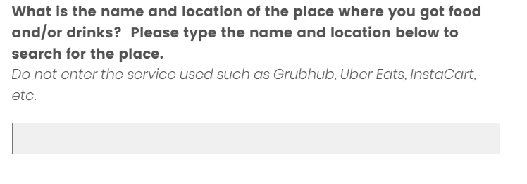 Imagine that you have selected “Somewhere else” to the first question below, how would you handle the 2nd question? If you can’t find a place in the search, what would you do?