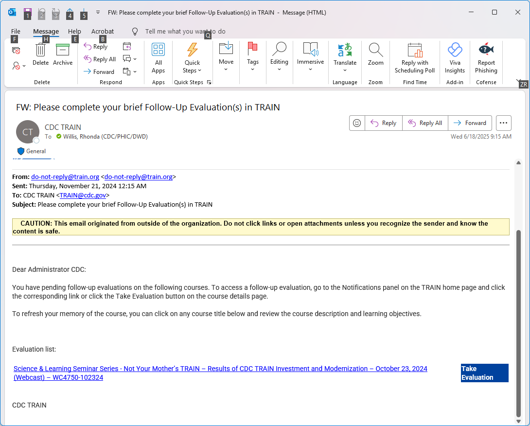 Attachment 10 – CDC TRAIN Evaluation Invitation Email and Reminder