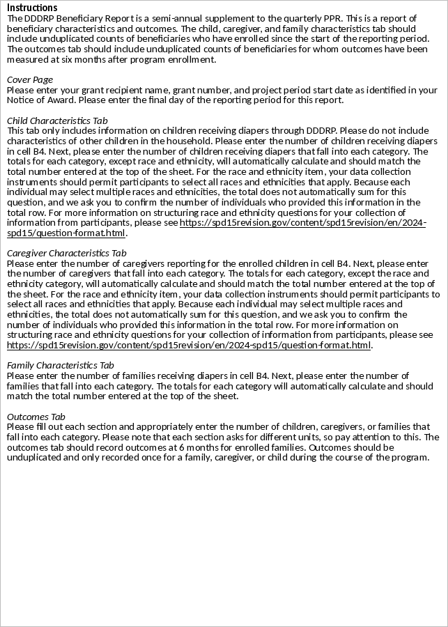 Diaper Distribution Demonstration and Research Pilot Beneficiary Information