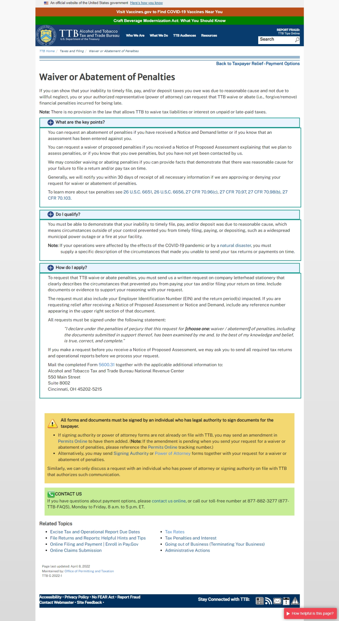 Waiver or Abatement of Penalties “Learn More” Page: