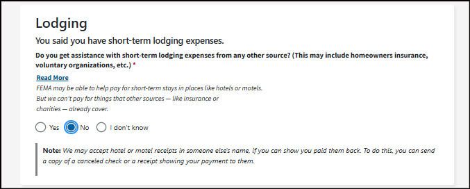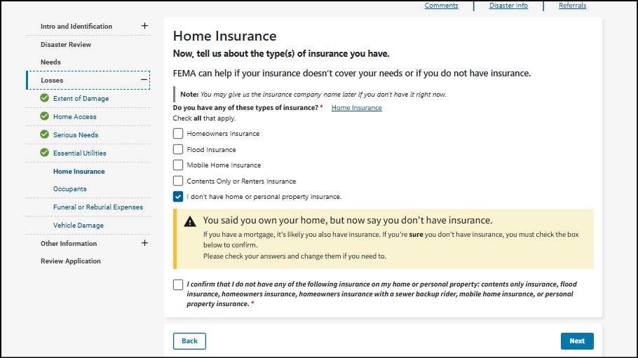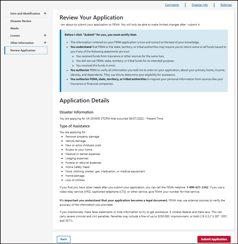 It's important you understand that your application becomes a legal document. FEMA may use external sources to verify the accuracy of the information you provided.