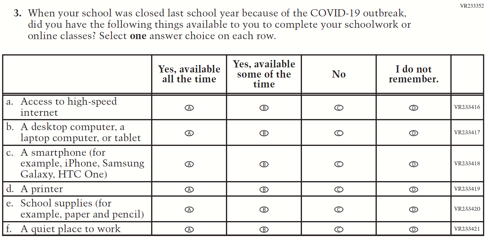 Appendix F - Item Library for NAEP 2026 Survey Questionn