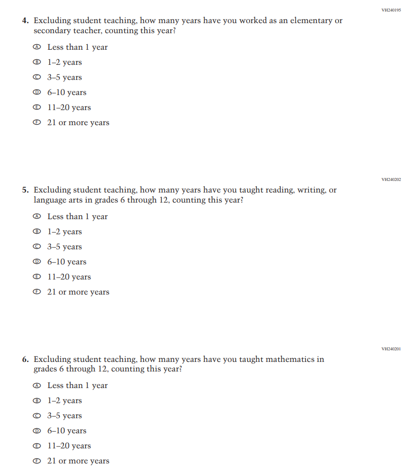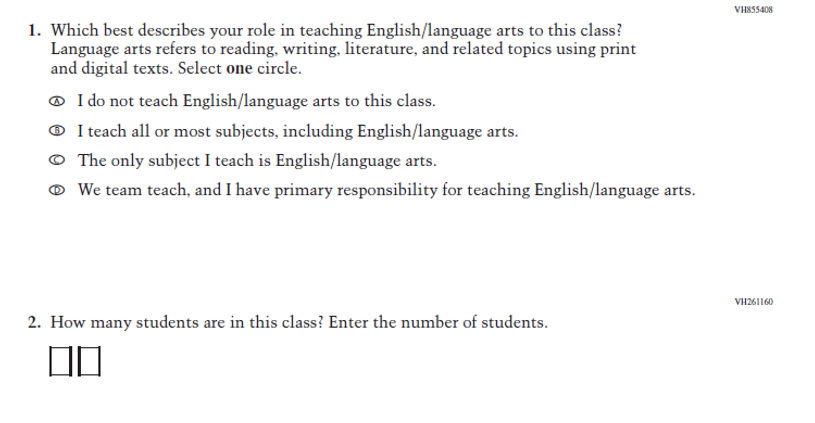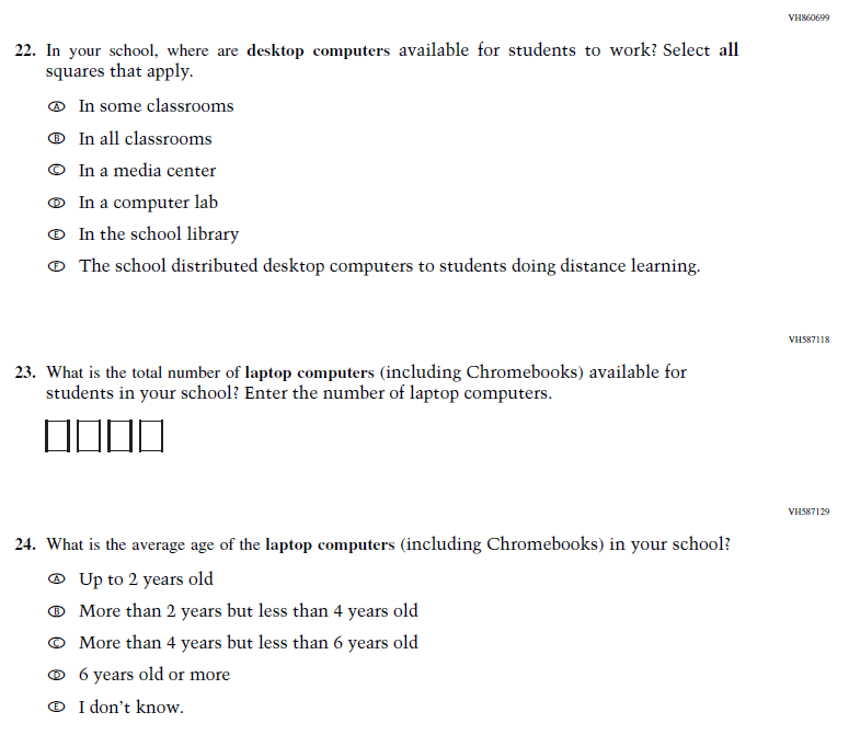 Appendix F includes the 2024 NAEP core and subject specific survey questionnaires for students, teachers, and school administrators, which were approved in October 2023 (OMB# 1850-0928 v.31). The final survey questionnaires for 2026 will be included in Appendices J1, J2, J3 and J-S in either Amendment #1 (Spring 2025), Amendment #2 (August/September 2025), or some combination of both Amendments. Updates to the race and ethnicity items, in compliance with the updated SPD 15 standards, will be included in Amendments #1 or #2. System login screens will also be updated in upcoming Amendments to the Clearance Package.