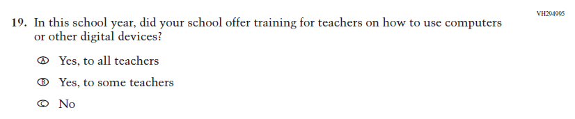 For 2026, we have aligned Inline Directions in Teacher and School Items with the Directions currently used in Student Items. The Item stem was revised for clarity and subItem d was dropped to reduce questionnaire length. |