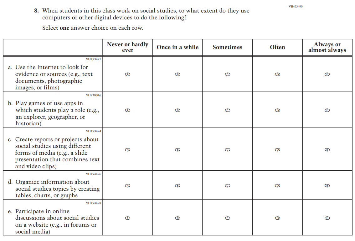 This Item was dropped to prioritize newer, updated Teacher items on Technology Use. |