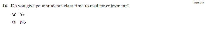 For 2026, we have aligned Inline Directions in Teacher and School Items with the Directions currently used in Student Items. Subitems a, b, c, and d were revised for clarity and subitem h was developed to measure content aligned with the new Reading framework. |