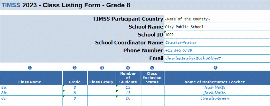 This document provides instructions to prepare and submit a complete and current list of your school’s eighth-grade mathematics classes, from which two classes will be selected to participate in TIMSS. All students in the selected classes will be asked to participate. If your class sizes are small, we may select more than 2 classes.
