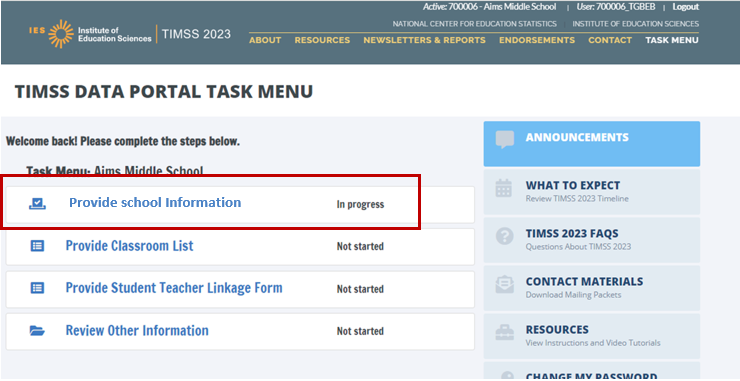 Appendix A16 TIMSS 2027 Login and Provide School Information Guide 33