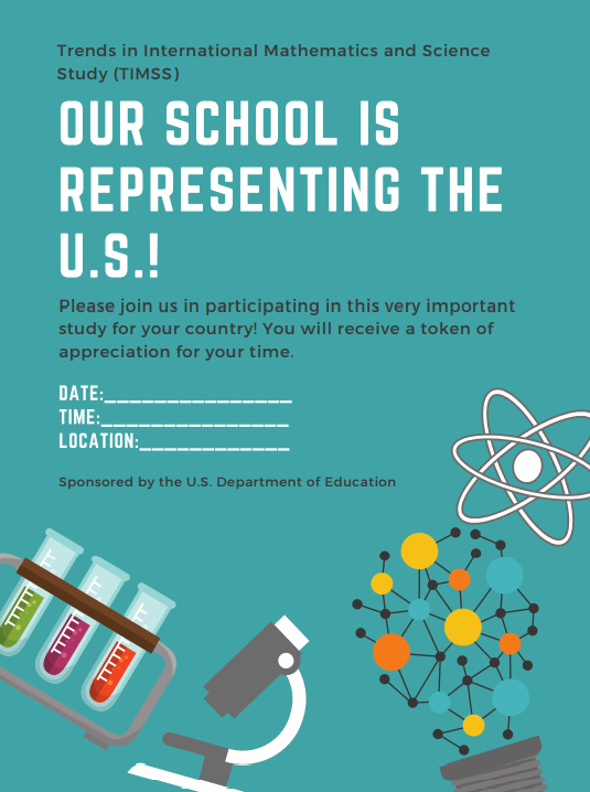 Please partner with us by learning more about TIMSS and encouraging participation of schools that are selected to represent the U.S. in this study. Your support and a letter of endorsement shows how important this research is and can increase participation and success of the study. Without school participation, the validity of national estimates is at risk.