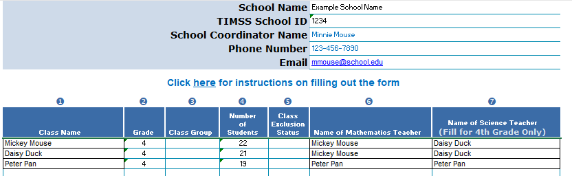 In columns 1-5 on the form, please provide student information for each student enrolled in that class: