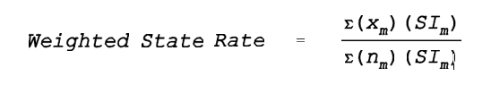 Because two different sample intervals will have been used, results of cases selected by each sample interval cannot be directly added to obtain STT-wide estimates as the proportions of the monthly frames sampled are different, i.e., the total sample is not a self-weighting sample. 1/ The alternate method will require all data to be weighted at the end of the 12-month period. The procedure involves inflating the various frequencies (e.g., number of families with an adult working, the number of families with a minor parent head of household, cases with earned income, etc.) in cases obtained using each sample interval, to their representation in the caseload and dividing the result by the caseload. 2/ This gives the weighted rate for the STT. In order to make each of the frequencies (number of families with an adult that working, the number of families with a minor parent head of household, etc.) comparable with those of other STT, it is necessary to multiply the weighted rate by the total sample size. The equation for this procedure is as follows: