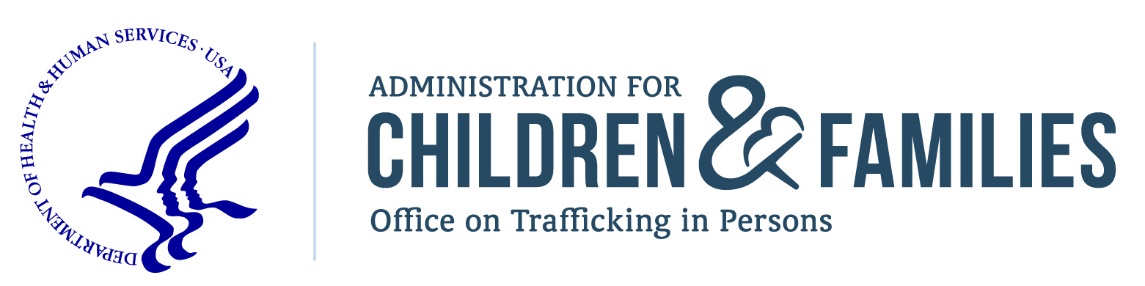 PAPERWORK REDUCTION ACT OF 1995 (Pub. L. 104-13) STATEMENT OF PUBLIC BURDEN: The purpose of this information collection is to gather data on the grant program to assess program performance, inform evaluation efforts, tailor technical assistance for recipients, respond to inquiries from stakeholders, and inform policy and program development. Public reporting burden for this collection of information is estimated to average XX hours per grant recipient, including the time for reviewing instructions, gathering and maintaining the data needed, and reviewing the collection of information. This collection of information is required to retain a benefit (22 U.S.C. 7105, Trafficking Victims Protection Act). An agency may not conduct or sponsor, and a person is not required to respond to, a collection of information subject to the requirements of the Paperwork Reduction Act of 1995, unless it displays a currently valid OMB control number. The OMB # is 0970-0467 and the expiration date is X/XX/XXXX. If you have any comments on this collection of information, please contact Vera Soto, Office on Trafficking in Persons, by email at Vera.Soto@acf.hhs.gov.