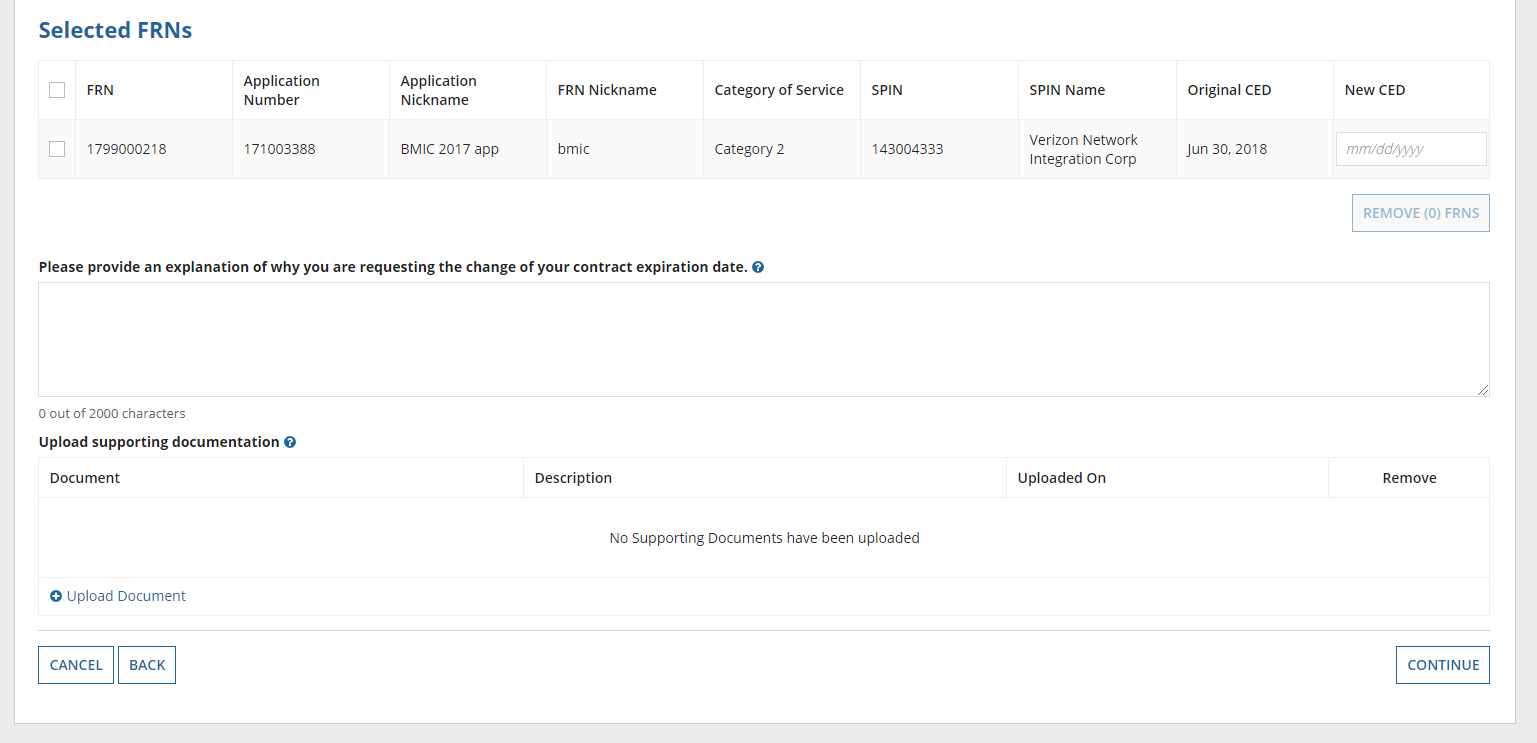 will be using the FCC Form 500 (e.g., by selecting changing service