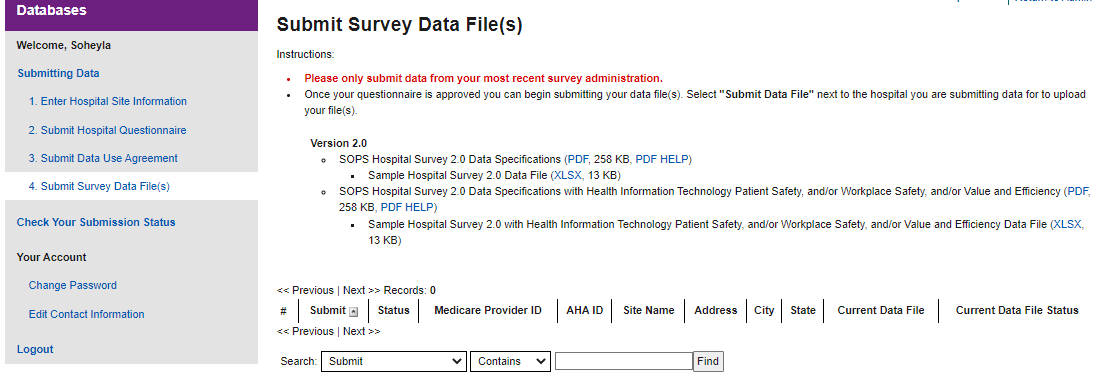 Attachment G: Example Screen Shots of Hospital Survey on Patient Safety Culture Data Submission Web Site Information Collection