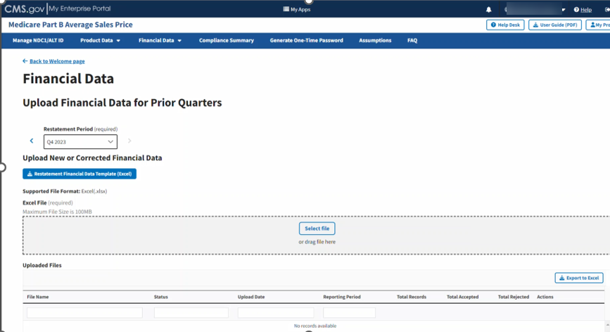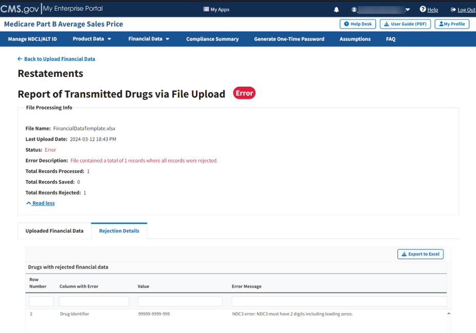 Figure 70: Upload Financial Data - Report of Transmitted Drugs via File Upload 50