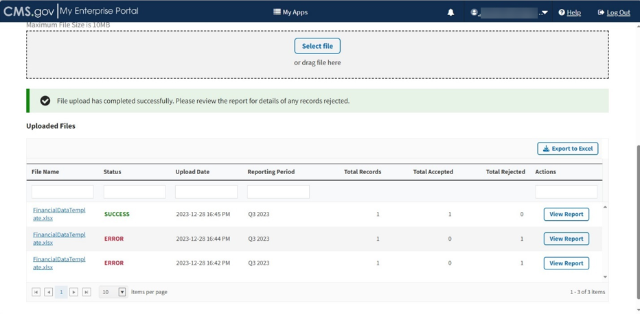 Figure 80: Upload Financial Data for Prior Quarters - New File Successfully Uploaded 56