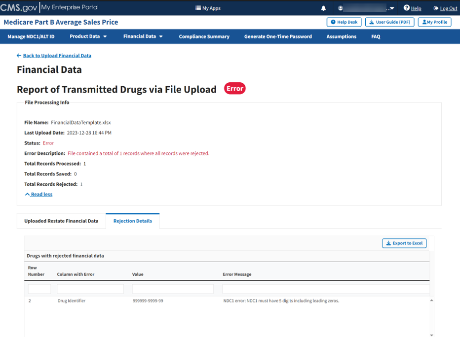 Figure 71: Upload Financial Data - Reported Rejection Details 51
