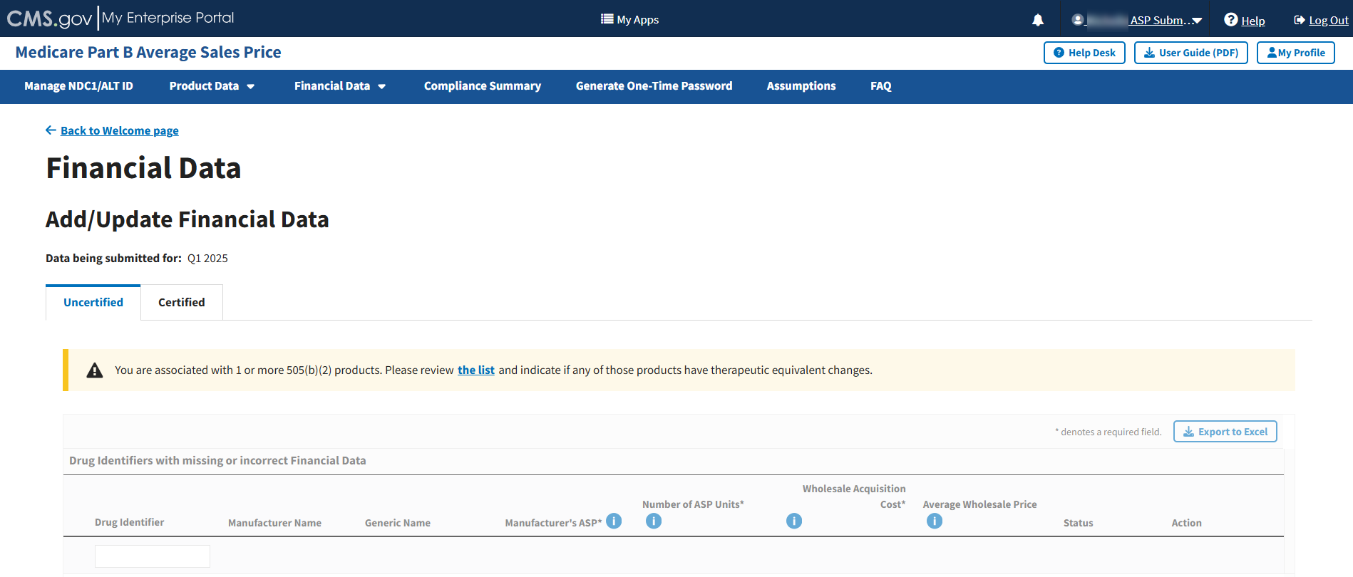 The purpose of this user guide is to provide guidance and instructions to representatives of drug manufacturing companies as they submit federally required Medicare Part B drug Average Sales Price (ASP) data to the Centers for Medicare & Medicaid Services (CMS).