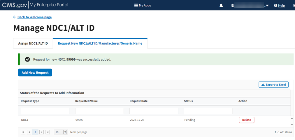 Figure 20: Request New NDC1 - NDC1 Successfully Added 14