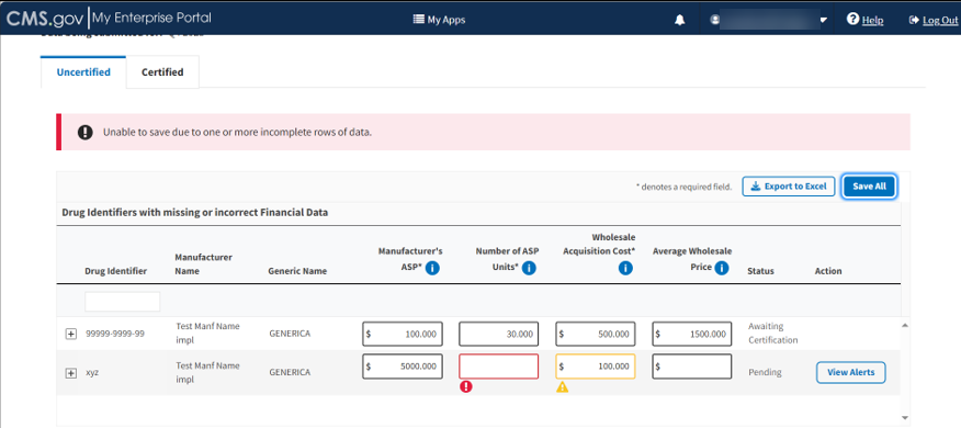 Figure 59: Add/Update Financial Data - Drug Identifiers With Missing or Incorrect Data 43