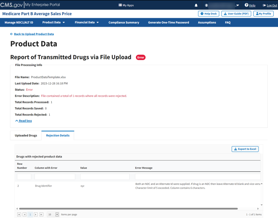 Figure 49: Upload Product Data - Reported Rejection Details 36