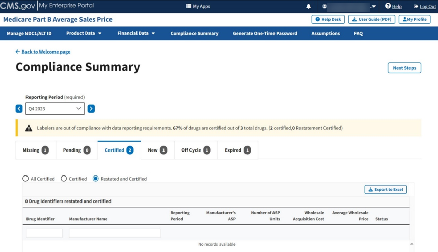 Figure 89: Compliance Summary - Pending Restatement Certification 64