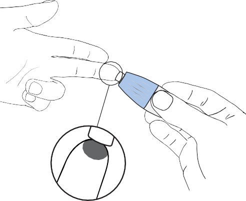 la yema, hasta que la aguja salga con un clic. La lanceta es de un solo uso. Todas las lancetas deben ser devueltas con su muestra al laboratorio para su eliminación.