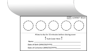 Sin cerrar la tarjeta de sangre, colóquela sobre una superficie plana y deje que el papel de recolección de sangre se seque al aire a temperatura ambiente, durante al menos 30 minutos.