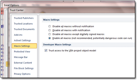 | Enabling Macros in Excel 2010 |
