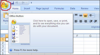 | 1. In Excel, click the Office button in the upper left corner of the screen. |