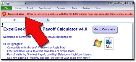 | With Excel 2010, Microsoft has added an additional layer of protection — over and above that found in Excel 2007, which centered on simply finding the "hidden" menus where macros can be enabled. |