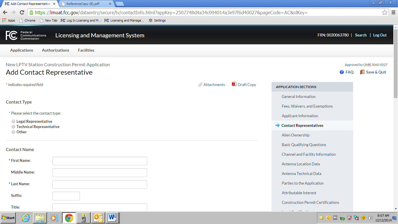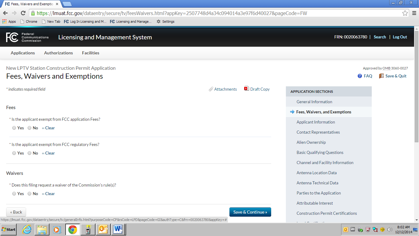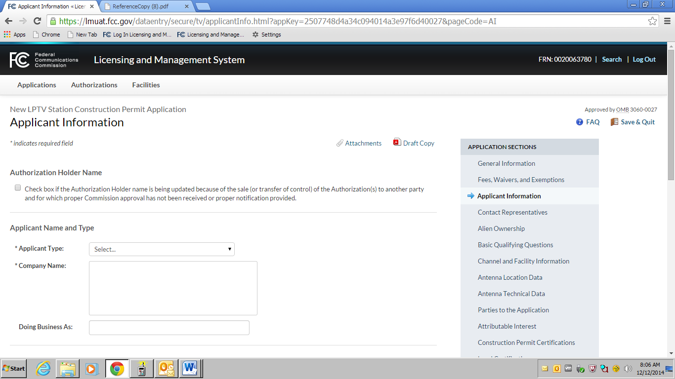 an OMB control number of 3060-0016.