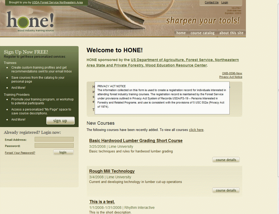 Privacy Act Statement (appears when cursor rolls over “Privacy Act Notice”)