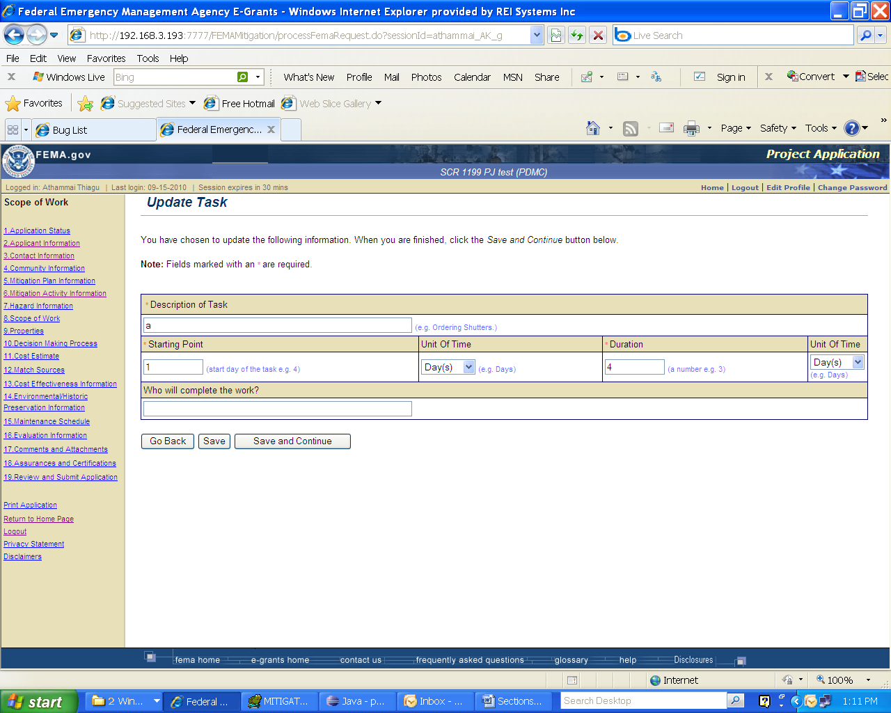 Public reporting burden for this data collection is estimated to average 12 hours per response. The burden estimate includes the time for reviewing instructions, searching existing data sources, gathering and maintaining the needed data, and completing, and submitting this form. This collection of information is required to obtain or retain benefits. You are not required to respond to this collection of information unless it displays a valid OMB control number. Send comments regarding the accuracy of the burden estimate and any suggestions for reducing this burden to: Information Collections Management, Department of Homeland Security, Federal Emergency Management Agency, 500 C Street, SW, Washington, DC, 20472, and Paperwork Reduction Project (1660-0072). NOTE: Do not send your completed form to the above address.