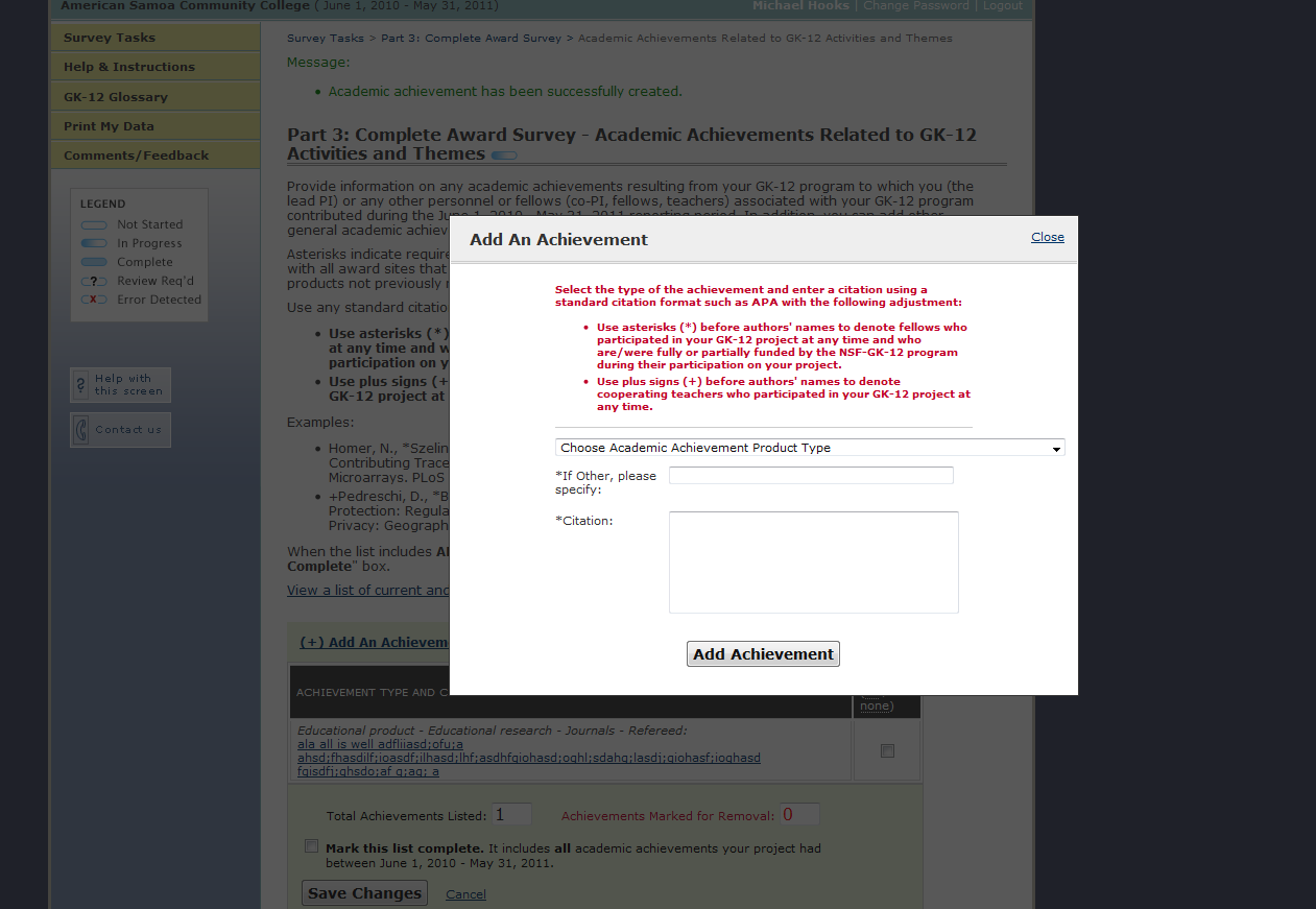 GK-12 Monitoring System Screenshots: Award Survey